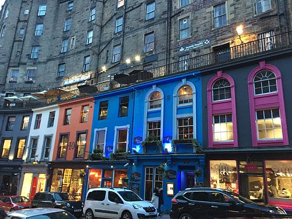 這裡可以看到獨特的愛丁堡街道,圓弧型的道路加上底下繽紛的房子外牆,